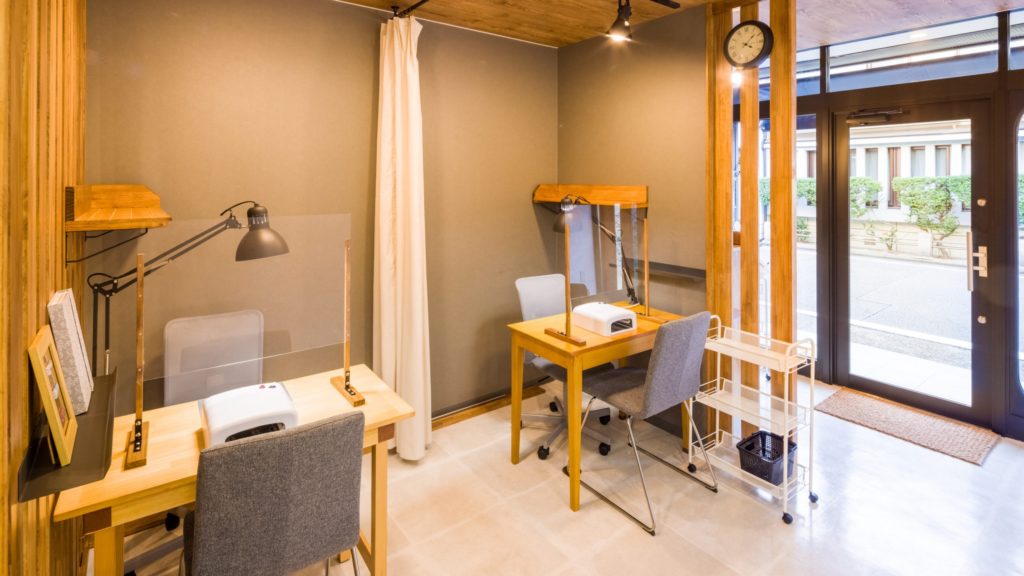 Additionのサロンは半個室スタイルとなっており、プライバシーを保てる設計となっています。ネイル施術に十分なスペースを確保してあります。