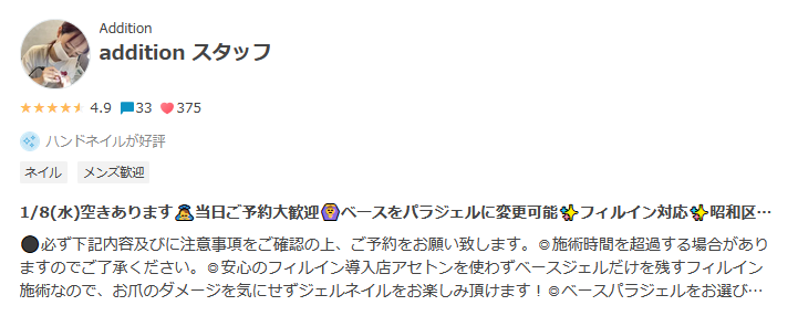 そんなことを夢見ているネイリストもいるかもしれません。ここだけの話、Additionのサロンは有名人も時々来ます。